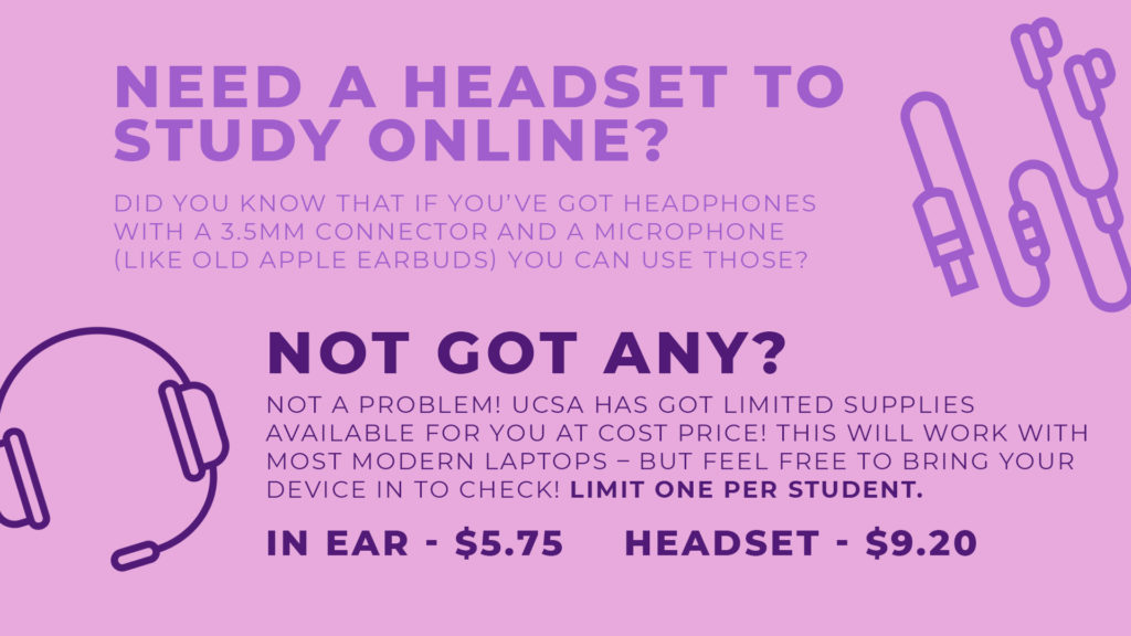 With the switch to online lectures and classes, the UCSA is offering some new services to keep you tuned in. IT Support Having difficulty accessing your online lectures? Not sure…